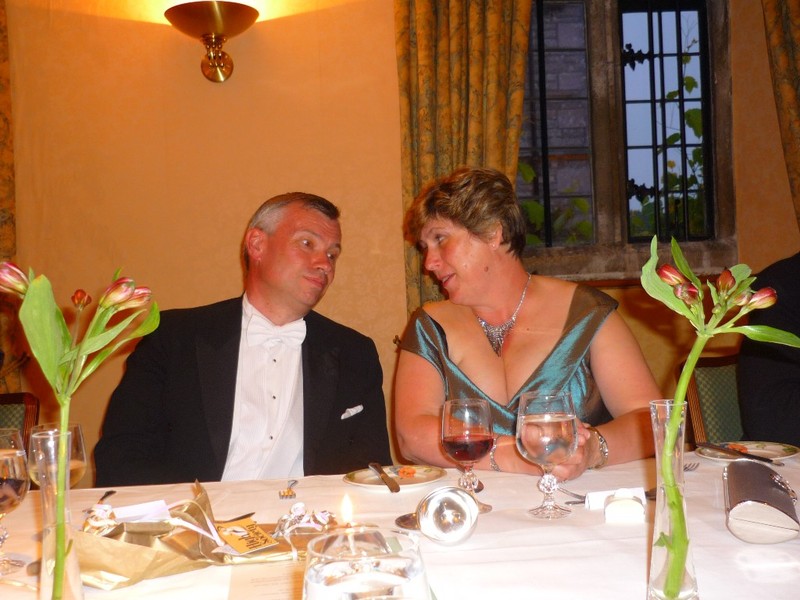 We had a black tie dinner on the Friday evening. Tricia had had her hair done, and with her 50’s style dress, and evening gloves she looked the part.