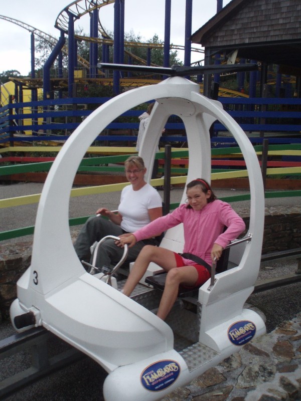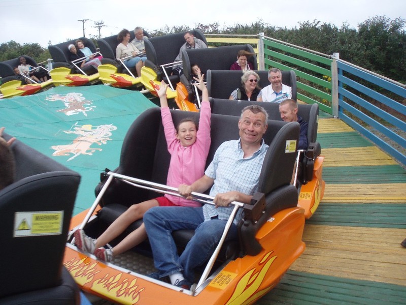 We were all awake by 7:30. Today we had promised to take Ellie to a theme park called Flambards for the day, so she hurried us along, and we were at Flambard’s for the opening at 10:30. Ellie wasted no time in getting into the rides. I went on one with her called the ‘Thunderbolt’ and thought my breakfast might reappear. Fortunately it didn’t. Nonetheless, I let Tricia go with Ellie on the rollercoaster
