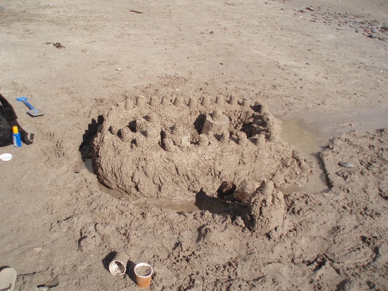 Back in the car we headed for Kennack sands. Ellie took to that water, and as I did on Tuesday, I changed into my trunks and went down with her, but the water was blooming freezing. I don’t know how Ellie stayed in for so long. It was cloudy for a while, but then it cleared and we enjoyed late afternoon sunshine. A game of frisbee, and some sand catle building followed. Back at the tent later, Tricia produced a meatball supper.