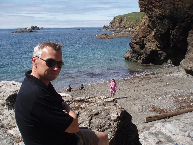 Again, we were all awake just after 7:30, including a mildly grumpy Ellie, who seemed a bit tired after the long day at Flambards. A full on breakfast of bacon, egg, beans and toast set us up nicely for the day. The weather was a bit cloudy and damp, but it brightened and we set off for Lizard Point and the the Lighthouse. The Lighthouse car park was a National Trust one, and Tricia is an NT member… but she had left her membership card at the tent. Wally. We had a guided tour of the Lighthouse and its workings, which I will generously describe as mildly interesting, before going off on a walk along the coastal walk in beautiful sunshine. The Cornish coastline takes some beating, the rocky cliffs and sea front, interspersed with sandy coves is quite something. You can just sit and look at it for ages and just enjoy the view. On our return we indulged in an ice cream. I took a few licks of mine, and then disaster the top of my cone broke and flew off, but, with the dexterity of a slip fielder, I caught it… and had a handful of cone and ice cream. I finished it… but I was a bit sticky when I did.