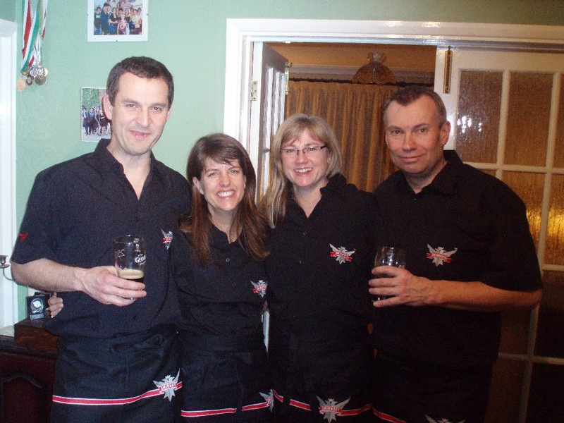We had a Safari Supper in Jan, which Tricia and I organised. 16 couples took part, and the theme was pub crawl. Well it was a cracking evening. Tricia and I hosted the end of evening at out house where everybody comes back together. Our friends Pete and Sara helped out. Here we are together, along with a picture of Pete (who works for Diageo who produce Guinness) with a wonderful little gadget that turns canned Guinness into a draught Guinness, and it was very popular!