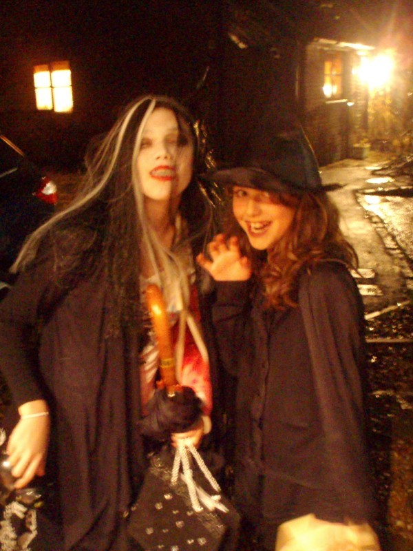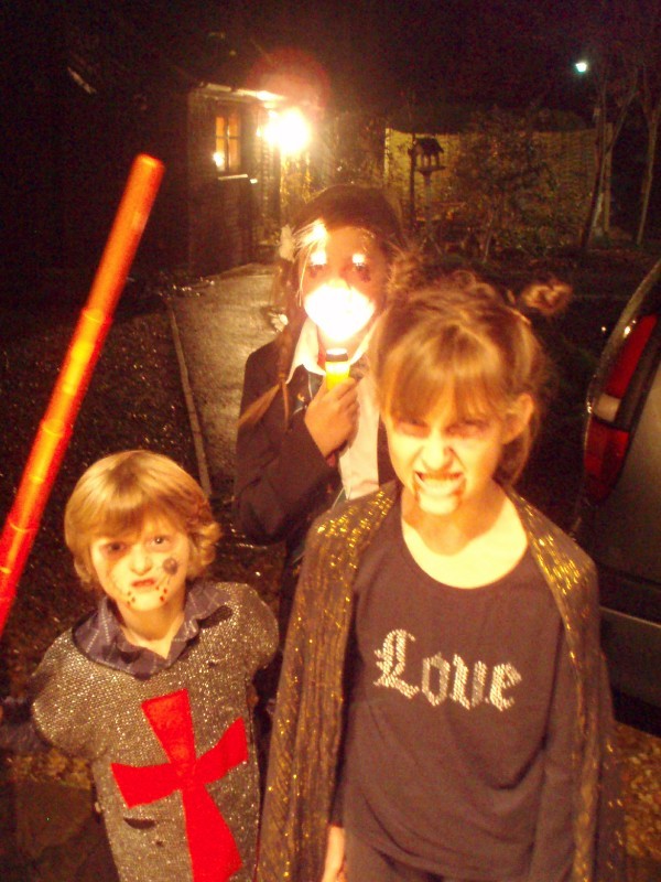 As a kid in the 60’s and 70’s, Nov 5th and Bonfire night was the thing we looked forward to… I don’t know whether it is because people have less firework events, or kids have changed, but Halloween seems to be more popular theses days. Ellie loves it… she went out with her friends Jess and Charlotte this evening ‘trick and treating’, we had to get a pumpkin and cut out a face on it and put it on display. It is a fairly safe place to go t&t’ing in the village, and Jess’s father went around with them to people we had pre-arranged a visit with. This year Ellie went out as a vampire. A few piccies… Ellie the vampire, then Ellie with Jess, and Emily, Polly and FReddie from next door.