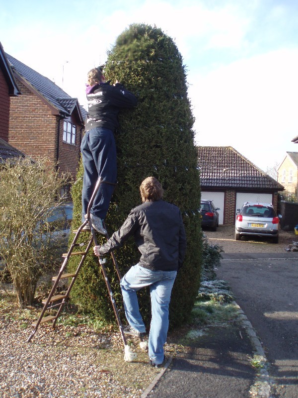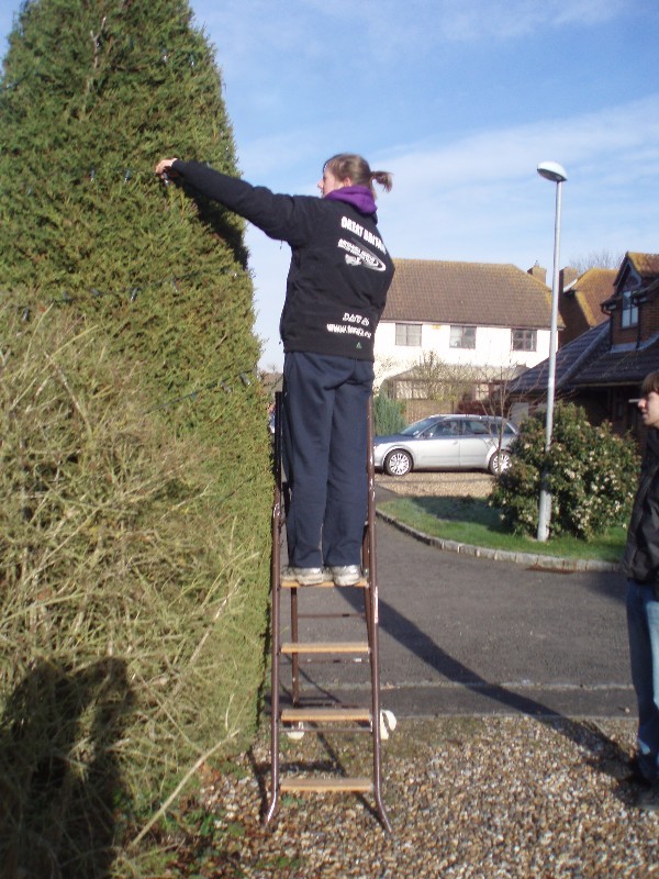 This morning they have put the festive lights up outside the house on the big conifer. Nikki normally does this, and as she won’t be back until around Dec 17th, she and Robbie put them up.