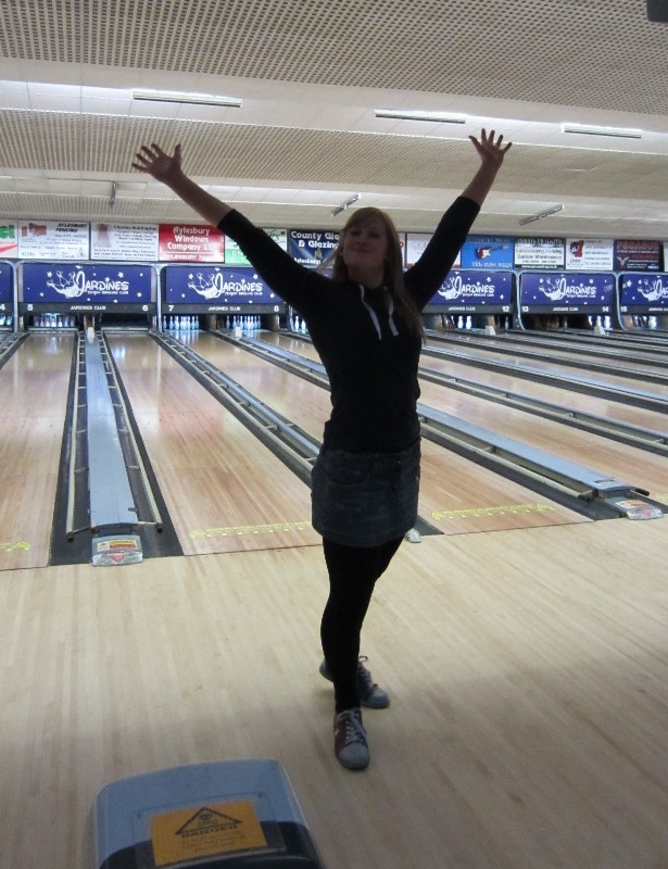 And some from the bowling… Robbie with Serita, Nikki, and Ellie bowling.