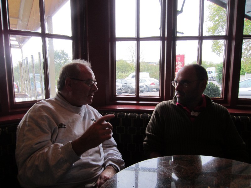 Bro Barry and Carlos putting the world to rights over a Murphys, Bro Barry and me, and Bro Barry telling Carlos about Cork harbour.