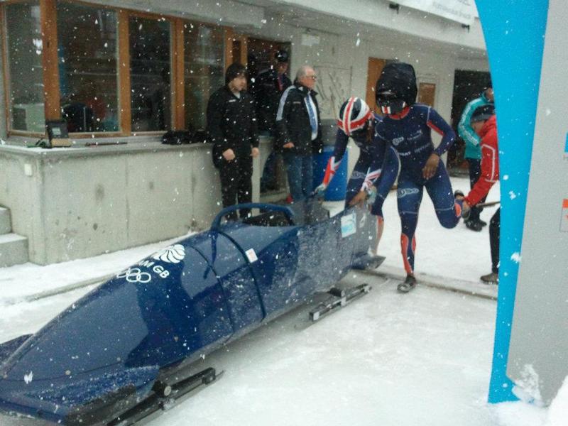 Nikki went off to Bath on Tuesday, then onto St Moritz on Thursday. Today she competed in a local event and had a good day, coming second. Seems she pushed well, and they had a good start time. I think that is probably the end of her season. Here she is just before her run this morning… Vicky is having spikes checked, Nikki is getting ready to push.