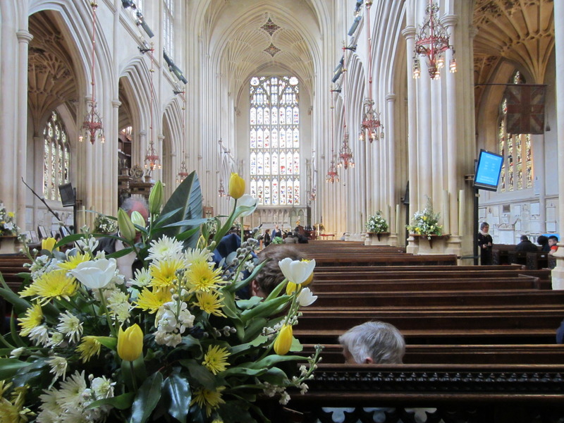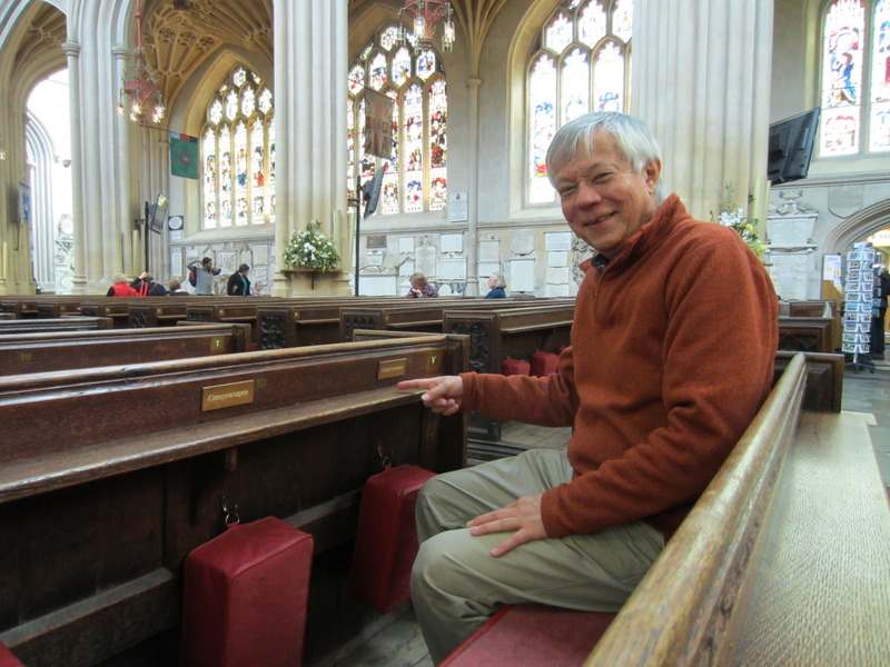 We then went into Bath itself, and visited the Abbey, a magnificent structure, and with the stonework cleaned inside and out it had a wonderfully light feel inside. Churches shouldn’t be dark places, and this one certainly isn’t. Six photo’s here of the Abbey outside, then inside with it’s fantastic ‘fan’ ceiling, and a onderful stained glass centre piece, covering around 50+ scenes from the Bible. Finally a picture of Clive, who is our local Church Warden, and who found the Church Warden seats in the Abbey.