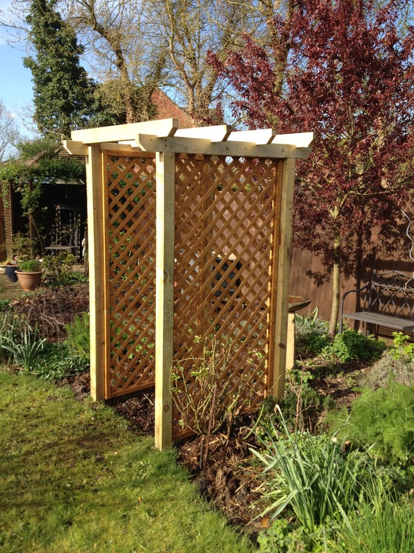 The wooden arch replaces a plastic / metal one we had that came down in the autumn. The rose will be up the trellis in no time.