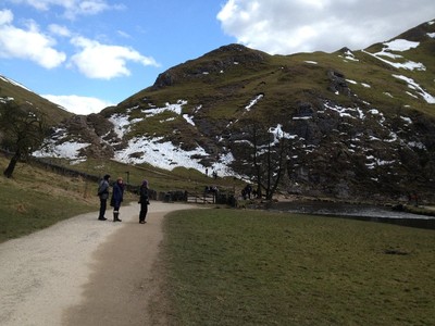 So, when Tricia and Ellie started watching a programme about sewing, I felt compelled to leave the room… and thought I would take the opportunity to blog. Having enjoyed a 4 day weekend with the Easter break, I looked forward to another one. On Friday Tricia and I left for the Peak District with our friends Pat and Clive. Clive was driving, and Tricia was map reading, so Pat and I were consigned to the back of the car… where we occupied ourselves with taking the mickey out of Clive and Tricia as they discussed / disagreed over the merits of different routes. We arrived in Ashbourne around 1pm, and parked up. A splendid lunch, was followed by a walk around the town. Then onto Dovedale, where we enjoyed a splendid walk along the river Dove… It was very cold, but dry. So a few layers were required to be outside, but the walk was splendid, cutting through Dovedale. There was still some snow on the hills, and the scenery was fantatstic. At the end of around 4 miles we even had an ice cream. It was then into the car, and off to our B&B. It was good to find that this lived up to the pictures and description. After a cup of tea and unpacking it was off to the local pub for a meal. The meal was ok, but marred somewhat when one of the customers got something caught in his throat… a nurse who happened to be in the pub helped the man, but in the end an ambulance was called. We hope everything was ok in the end. Back at the B&B, it was off to bed…. and I certainly slept well. Some pictures… the driver and the map reader. Then some of Dovedale.