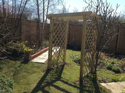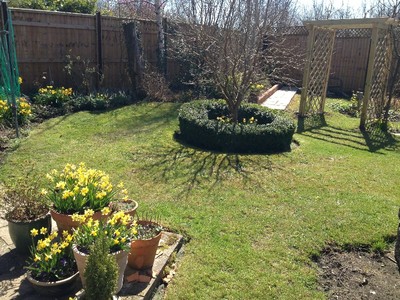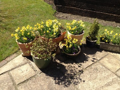 Thank goodness… everything seems a month late, but temperatures are up somewhat, and the sun has even shone. So much so that I was able to give the grass in the back garden its first cut of the summer yesterday. There is quite a bit of moss in it, and weed, so I am going to have to do something about that. But it was nice to enjoy the sun in the garden. We have had a new path put in at the end of the garden, and a wall to bed up to, and a new frame for the apple and pear trees to grow around. What with the raised beds that were put in a little time back, we have done plenty for the garden this year. Tricia just wants some better weather so that she can start planting out some items. Hopefully she will be able to do so this week. Here are some pics, some daffodils finally in bloom.