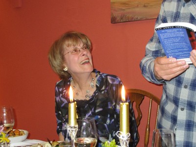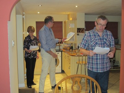 It has been a busy weekend. I was asked to do some shopping on the way home on Friday, when I got in I had to help Tricia tidy up a few bits before we had Alan and Rachel, and Pete and Sara join us for a ‘curry evening’. Plenty of laughs till we all started to fade. By the time Tricia and I had tidied up it was midnight before we got to bed. Then yesterday evening we were entertaining again, Pat and Clive, Bob and Carole, and Peter and Jane joined us for a Shakespeare evening. Tricia did and Elizabethan spread, and we all did some parts of Sheakespeare plays or sonnets, throughout the evening. We had a splendid time, lots of laughing. Again by the time we went to bed, it was past midnight. Here are some pics… first we have a view of us reading some Shakespeare, a picture of Jane… and then Clive reading from Henry V, ‘once more unto the breach’…etc
