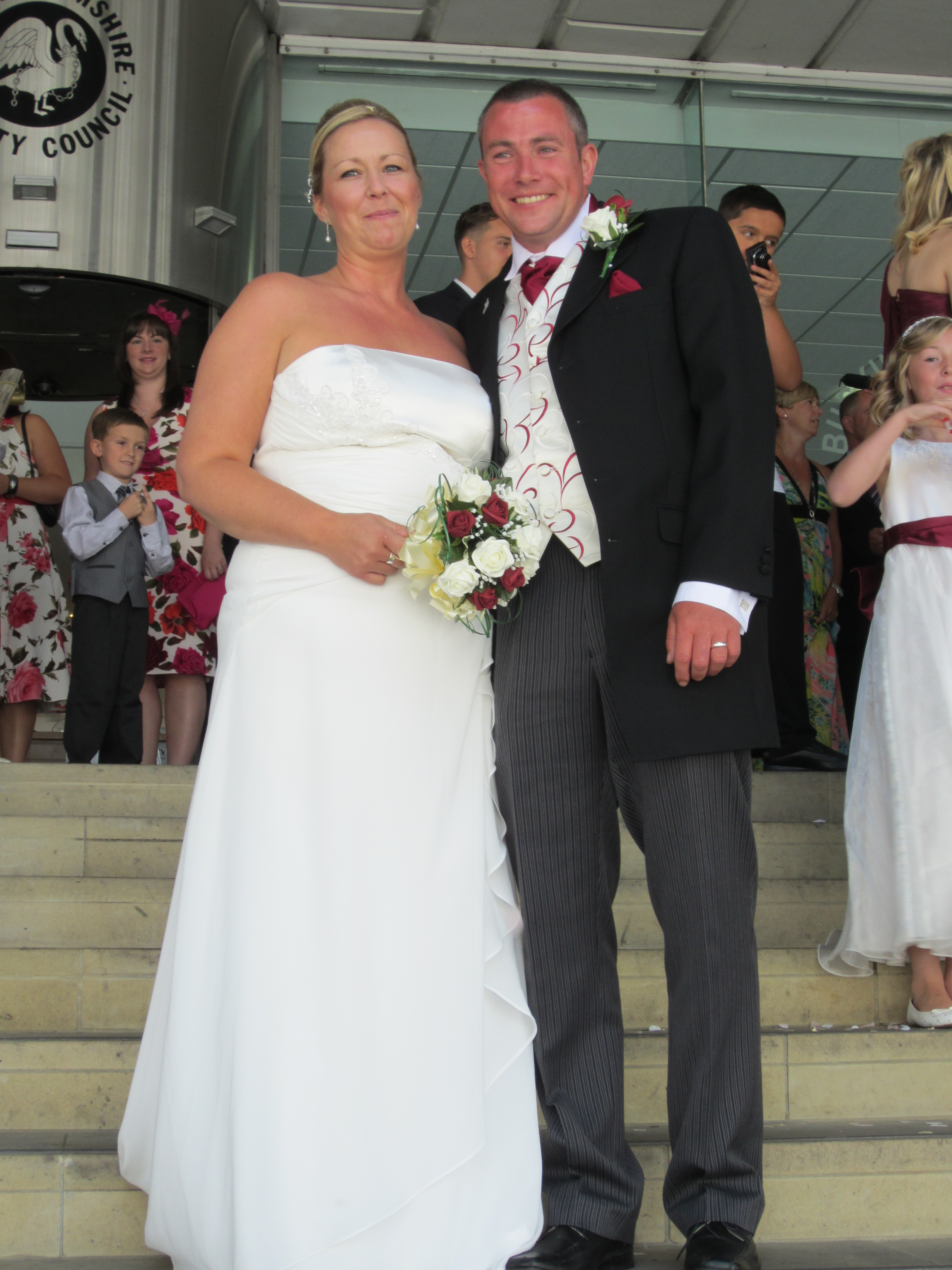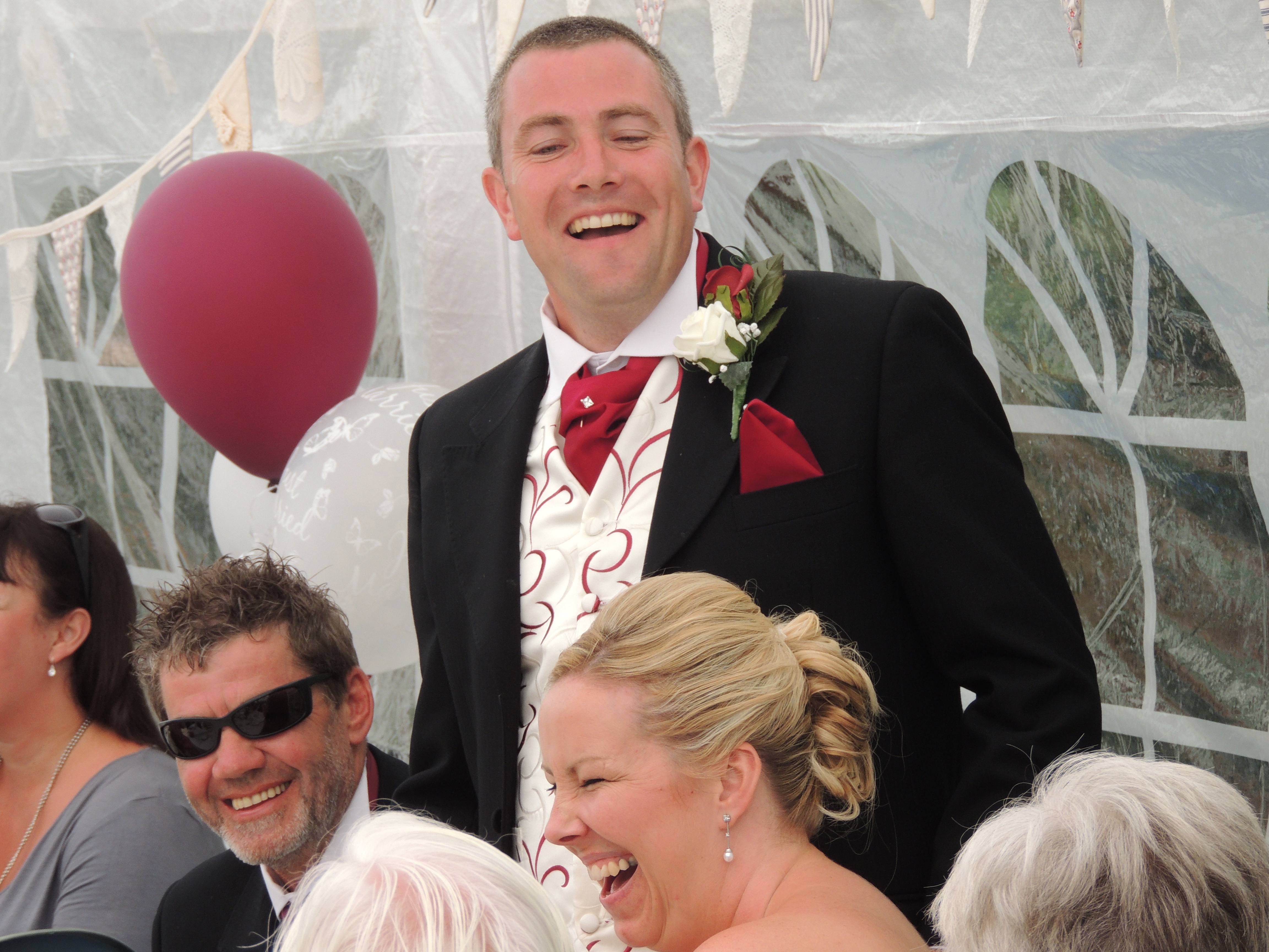 Some photographs of the day. David and Manda after wedding, Dave making his speech, Dave and his two big sisters, and one of ‘Thompson’ family with other halves…