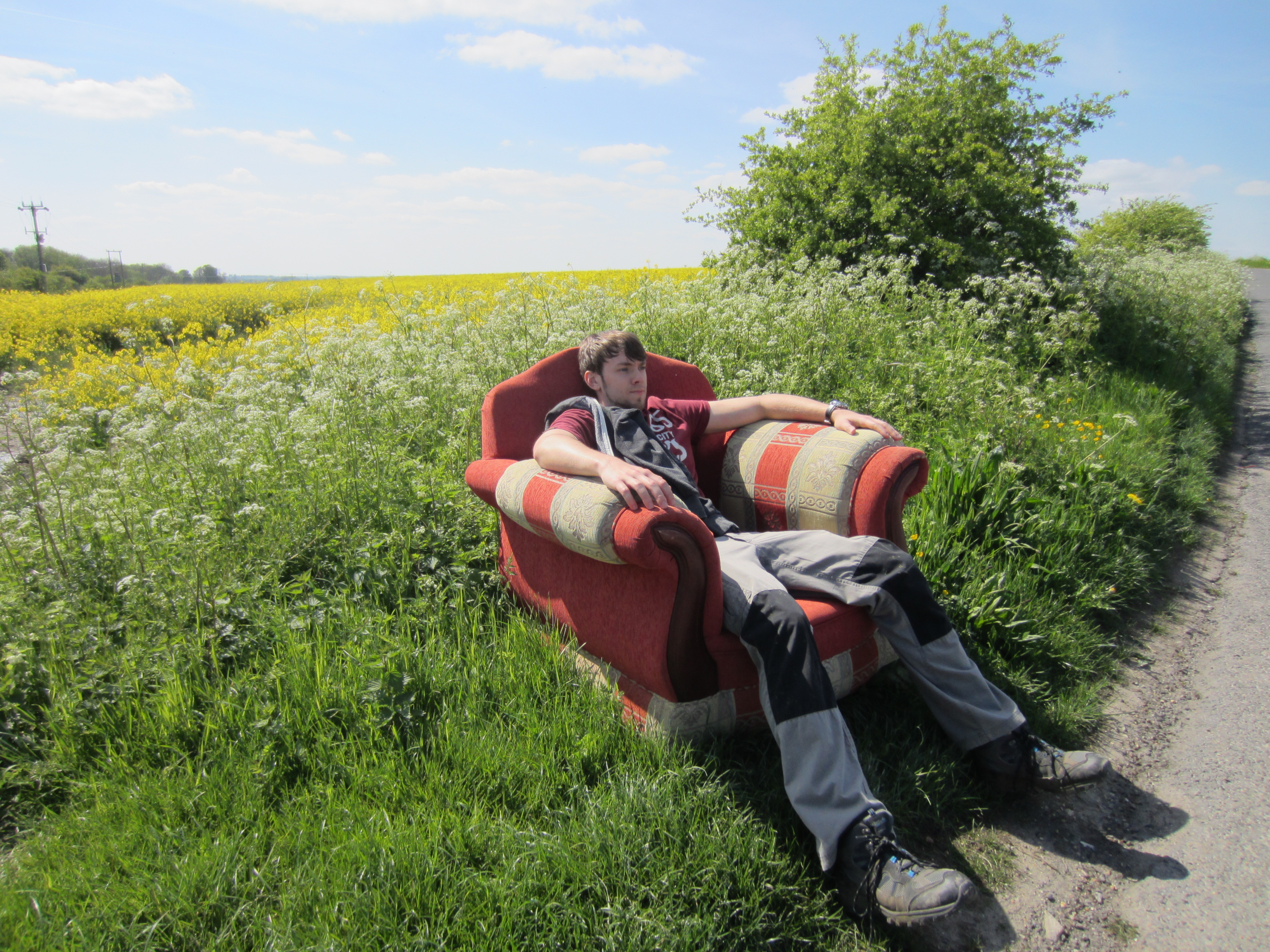 … and from Rob’s birthday. The cake Ellie made. And finally a photo of Robbie in an armchair that had been dumped. Tricia and Rob were doing a walk as part of their build up to walking the Highland Way, and Rob took advantage of a quick rest 🙂