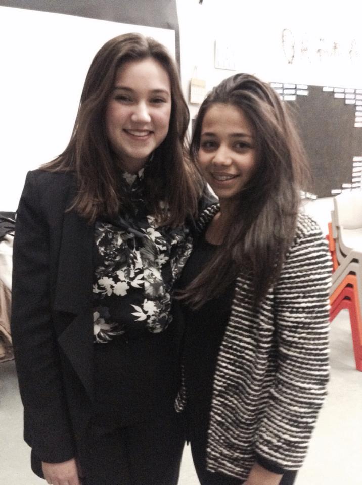 Two pics to finish…. Ellie in her business suit with her friend Lucy, and Robbie with a cat on his head.