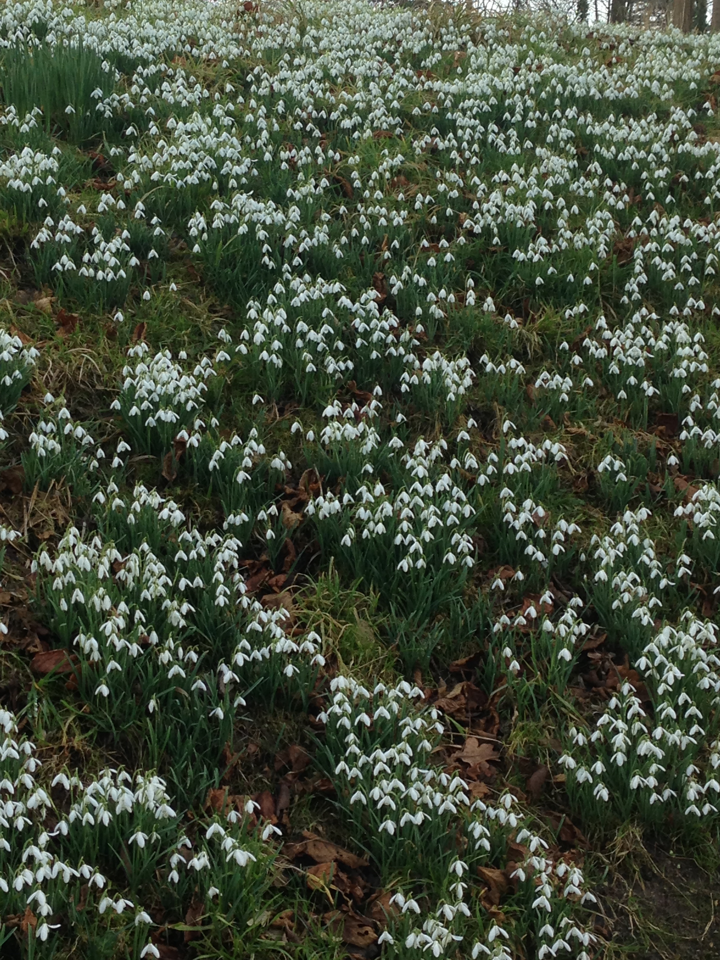 Last weekend Tricia and me, along with our friends Pat and Clive went down to Corfe for the weekend. We arrived and took lunch near the castle, and then Tricia and Pat met with the owner of the hotel we will be staying in June, when we have around 10 couples staying for the weekend. We then moved on to have a look at Lulworth cove, before going to the B&B, which was a rather lovely farmhouse. In the evening we had a ‘valentines’ meal in a nearby restaurant. The food was fantastic. Sunday was a glorious day, so a visit to Tyneham – this is a village that was taken over by the MoD in 1943, and the villagers were displaced, never to return… it is still within the Purbeck ranges used by the military. We walked to the coast, and then went off to see the snowdrops at Kingston Lacey, before returning to Swanage for a coastal walk, and then on for a lovely pub meal… a glorious day. We returned on Monday in the pouring rain and stopped off at a place called Shaftesbury (famous for the Hovis Hill). For Valentines Day and Birthday combined Tricia got us tickets to see one of my favourite musicians, Diana Krall, at the Royal Albert Hall in October… and then when in Shaftesbury she treated me to a new jacket, trousers, and shoes…. Blimey, spoilt :-). Some pictures from the Corfe trip…. At Tyneham Hall there was a stage, with some directors chairs, so one of each of us, Lulworth Cove, and the B&B we stayed at, the coast near Tyneham, and then loads of snowdrops.