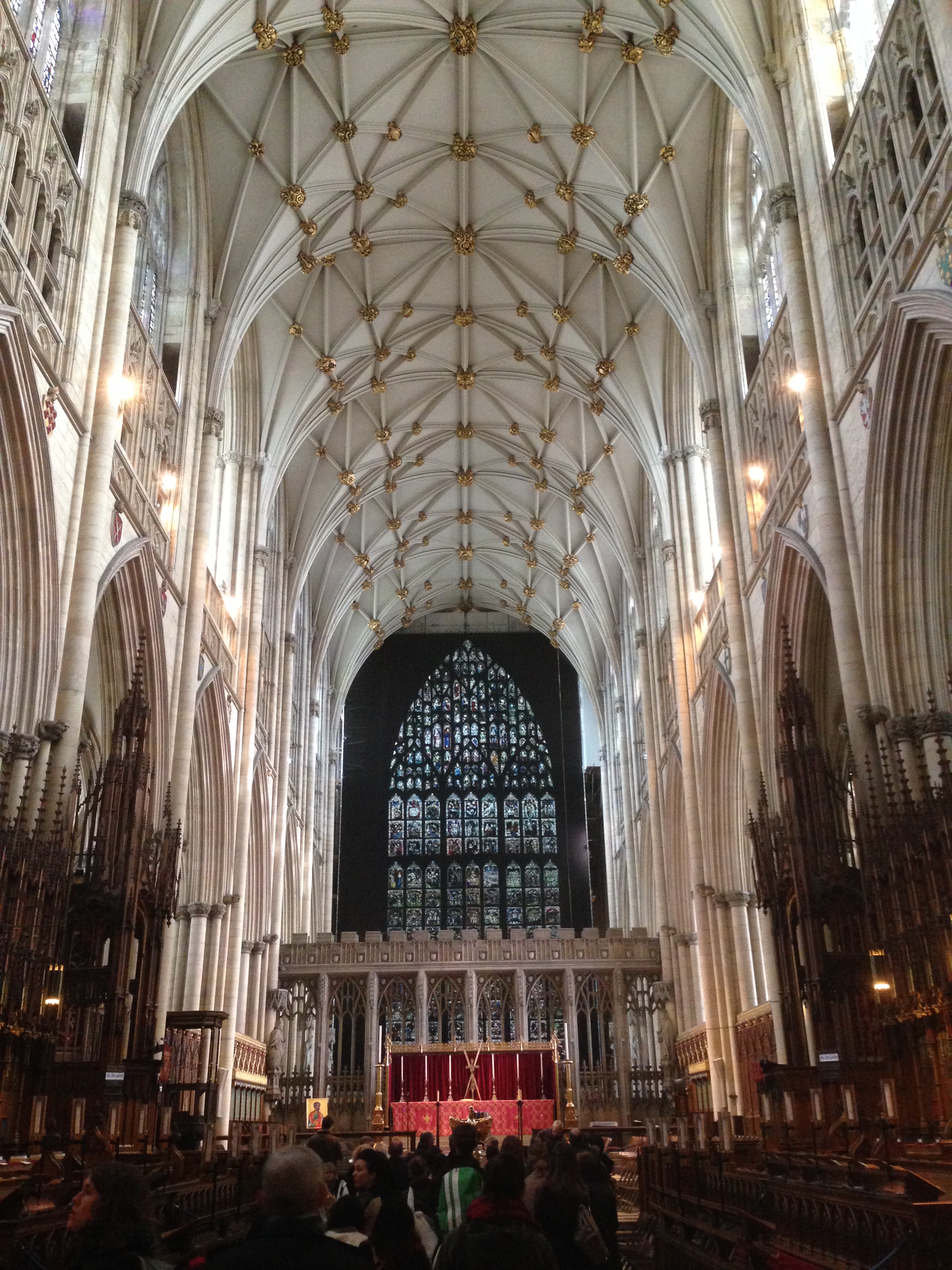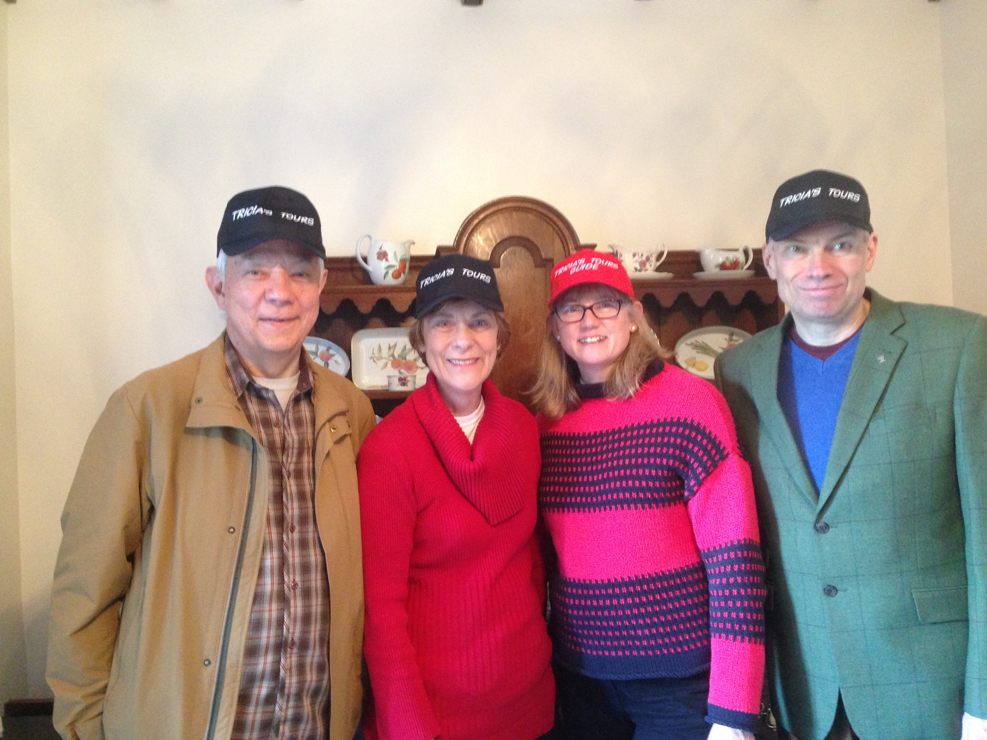 Here we have the gardens at Beningbrough Hall, the huts at Eden Camp, me with Pat and Clive at Eden Camp, Pat with the horse at the B&B, Pat and me on the York walls, the inside of the Minster, and the Minster from the walls, then the four of us in our Tricia Tours caps, then Castle Howerd, and finally another one of the Minster.