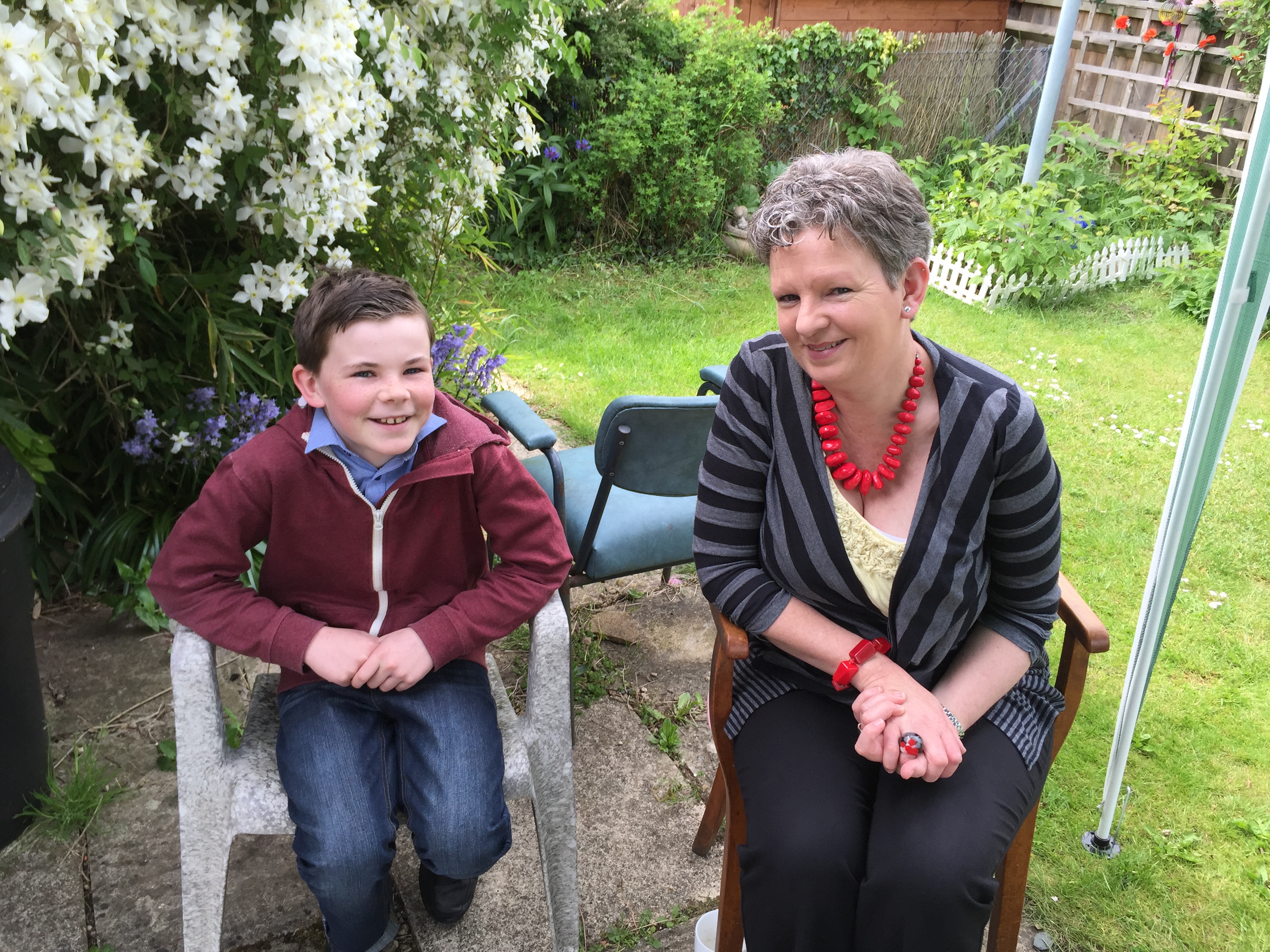 On Saturday, Ellie was working, and Robbie was off in London at ‘comic.com’ or whatever it is, dressed as Starlord from Guardians of the Galaxy… I went across to Chipping Norton to see some old friends. It was good to catch up with Ceri, who I have known since around 1980… but who I haven’t seen for many years. Tea and cake in a local bookshop with Ceri and her son George, was followed by a visit to Jill and Gwyn, who used to run the White Hart in Charlbury…. Where the not so famous Mystic Wizards used to visit J… A very pleasant afternoon was had. I got back home as Ellie got back from work… then after picking up Robbie, we sat eating pizza until Eurovision came on… Robbie went up to his room, I migrated to the study and left Ellie to it…. Here are Jill and Gwyn, Gwyn as ever promoting White Shield, and Ceri (who doesn’t like having her photograph taken) with George.